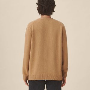Inspired by vintage “grandfather” cardigans, a sweater made from 100% cashmere in a soft jersey stitch with natural drape and structure. Designed with an oversized fit and saddle armholes, it’s finished with rib trims at the cuffs and hem, functional buttons at the center front, and cleanly finished pockets.