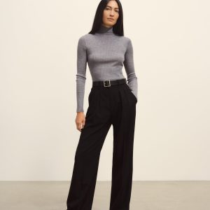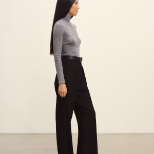 Slim fit turtleneck sweater in a 24″” length, elevated in a 14 gauge variegated rib knit from a blend of merino wool, silk, and cashmere. Luxe, easy, and ideal for layering. Constructed with self-starting hem and sleeve trim and fashioning at the neckline and back shoulder for durability.