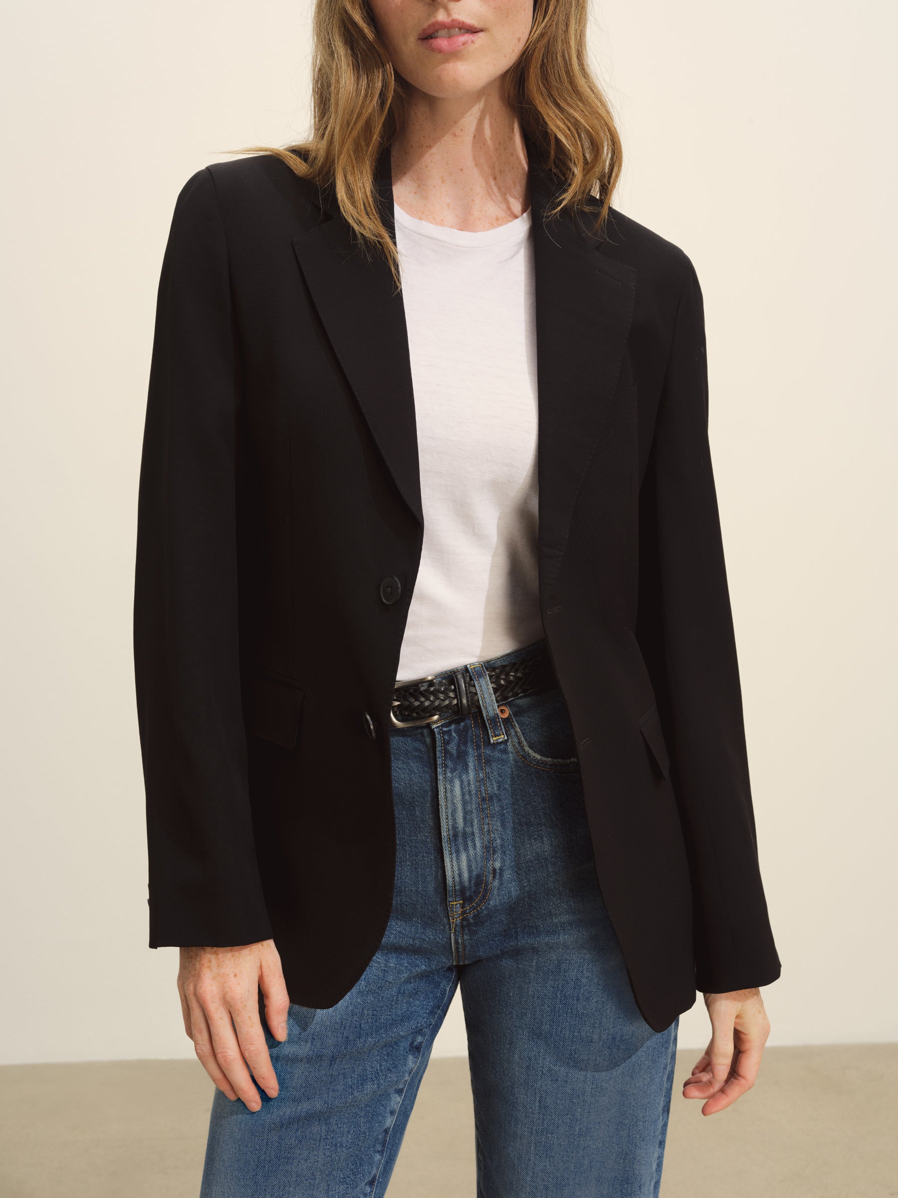 Expertly tailored and made to pair with matching trousers or denim, this jacket features all the true menswear-style details including two welt flap hip pockets, a welt chest pocket, single back vent and functional surgeons cuffs. It’s crafted from light and drapey 175 GSM fine Japanese wool with a 2/72 x 2/72 construction and fully lined for a smooth feel and easy drape. The natural shouldered silhouette is inspired by vintage 1950s menswear with a timeless fit and feel.