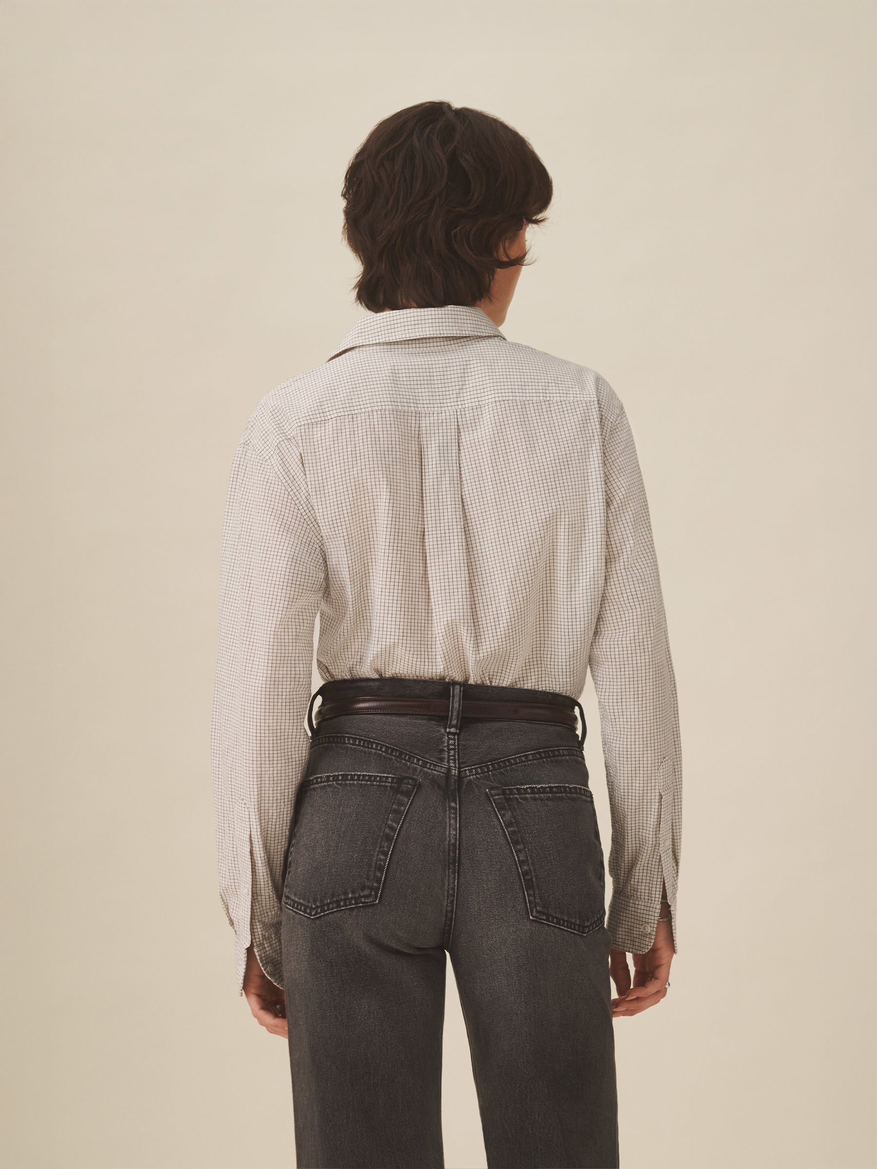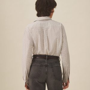 Relaxed button-down shirt in 3.7 oz. cotton plainweave. 29.5” length hits just below the hip. Details include a back yoke with box pleat, a single spade pocket, and pleated cuffs. Inspired by mid-century men’s shirting, this piece can be worn on its own, layered over a tee, or paired with our Rider Pant. Garment washed with softener for a lived-in feel.