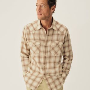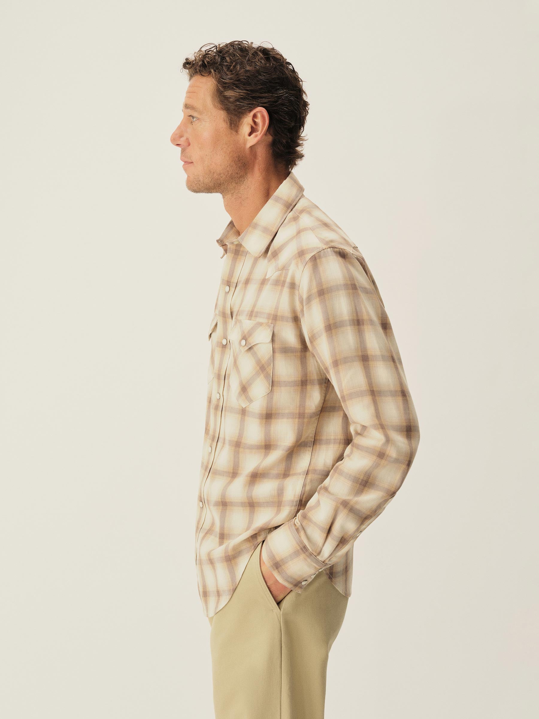 In the spirit of the ol’ Palomino, a classic fit western style shirt made from a springweight blend of cotton and wool, ideal for warm climates. The shirt has all the cowboy details like pearl snaps, a classic pointed yoke, five point pockets with pointed pocket flaps.