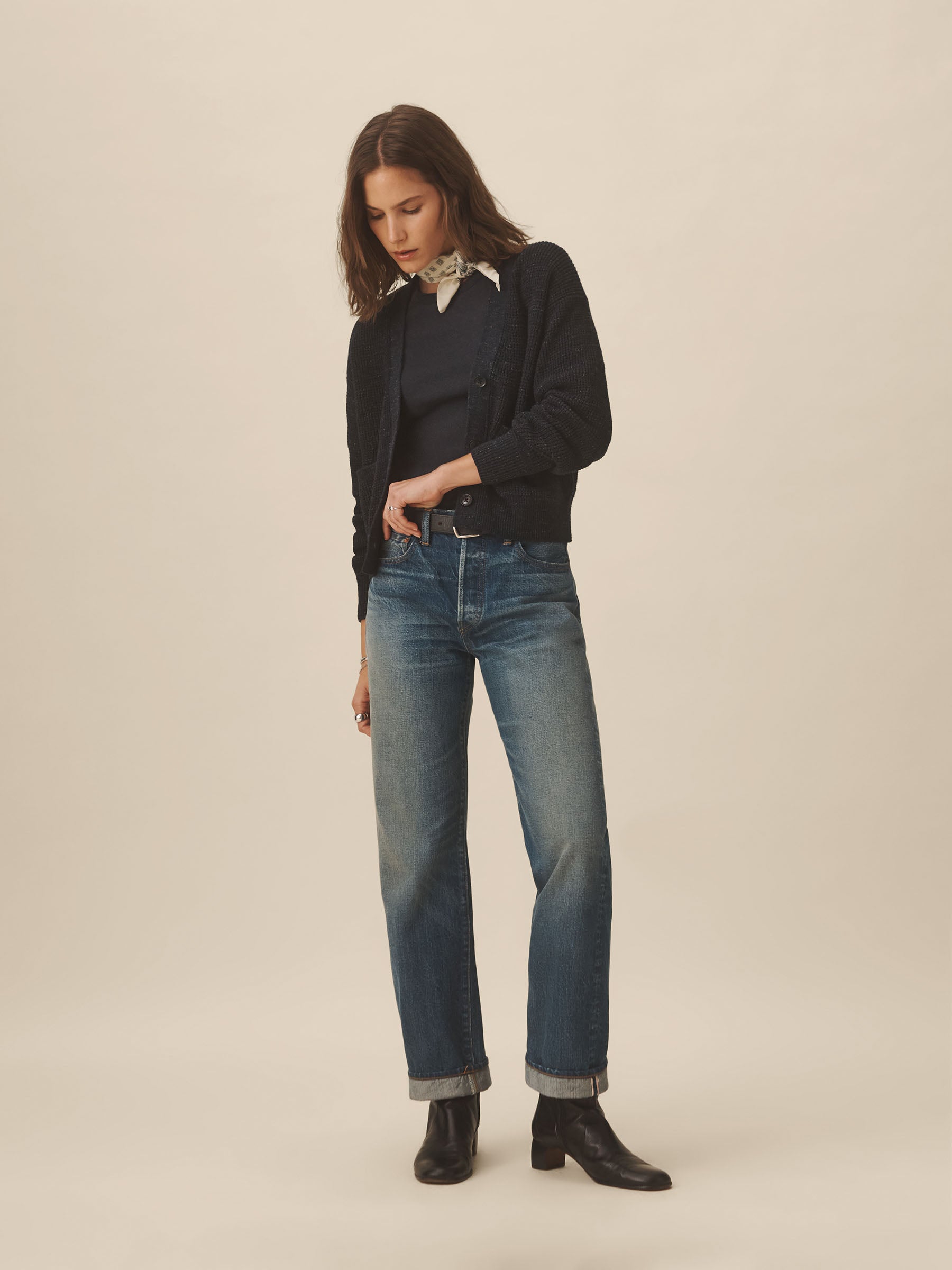 A relaxed cardigan made from marled cotton yarn and knit in a classic waffle stitch. Designed to layer over tees, it’s built with a functional front placket with urea buttons, patch pockets, and a clean V-neckline.