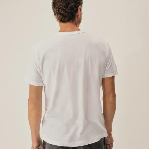 Classic fit short sleeve crewneck tee with a straight hem. Cut from USA-grown 145 GSM cotton jersey with a light slub texture and sewn at BM Knitting Mills in Mohnton, PA. Garment washed with enzymes and softener for a lived-in feel.