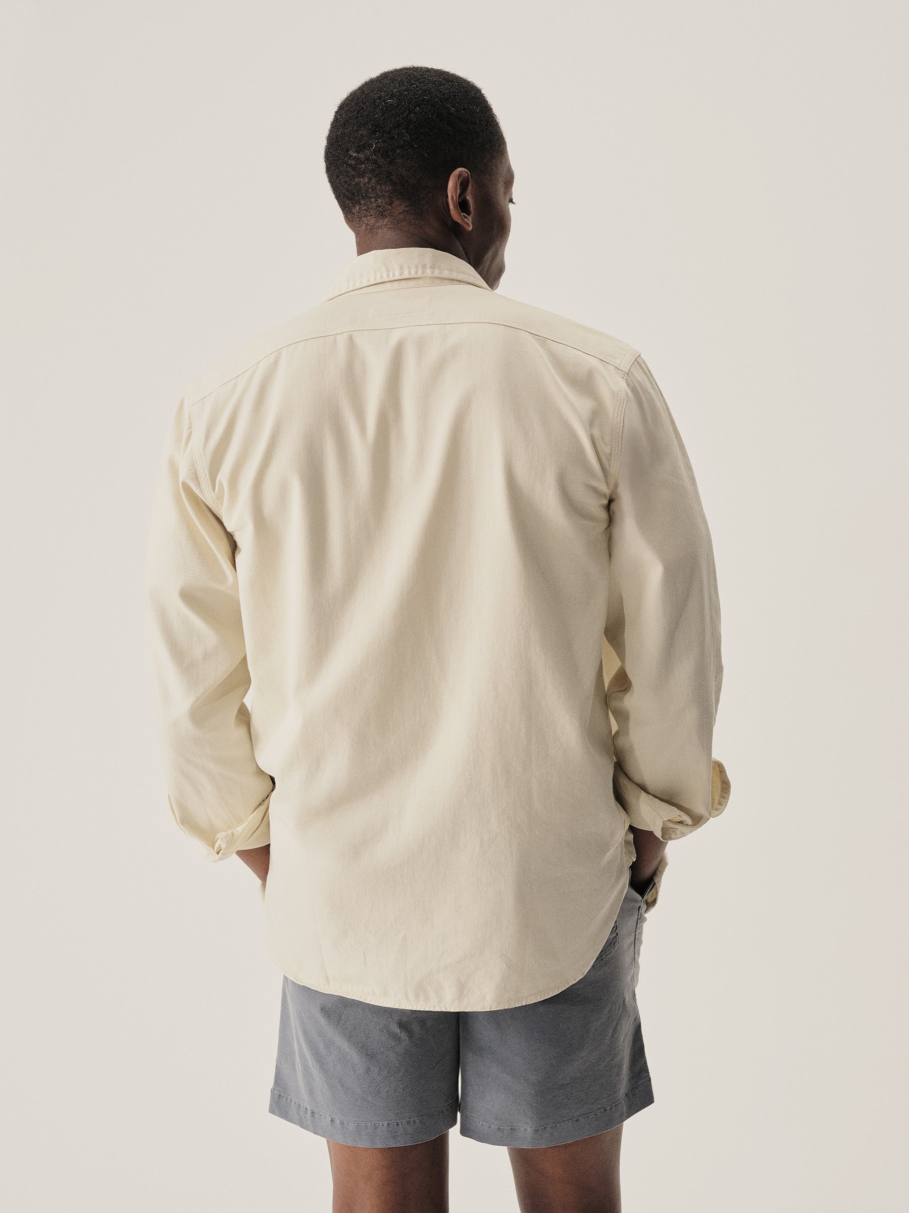 Inspired by a 1940s workshirt from our archives, this is the quintessential midcentury American workshirt. It has a classic fit, two flap chest pockets, and a curved hem. It is cut from a sturdy midweight cotton twill that will soften with every wear. Washed for a lived-in feel.