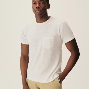 Classic fit short sleeve crewneck tee with a straight hem and patch chest pocket. Cut from a midweight cotton with tonal jacquard patterning. Garment washed for a lived-in feel.