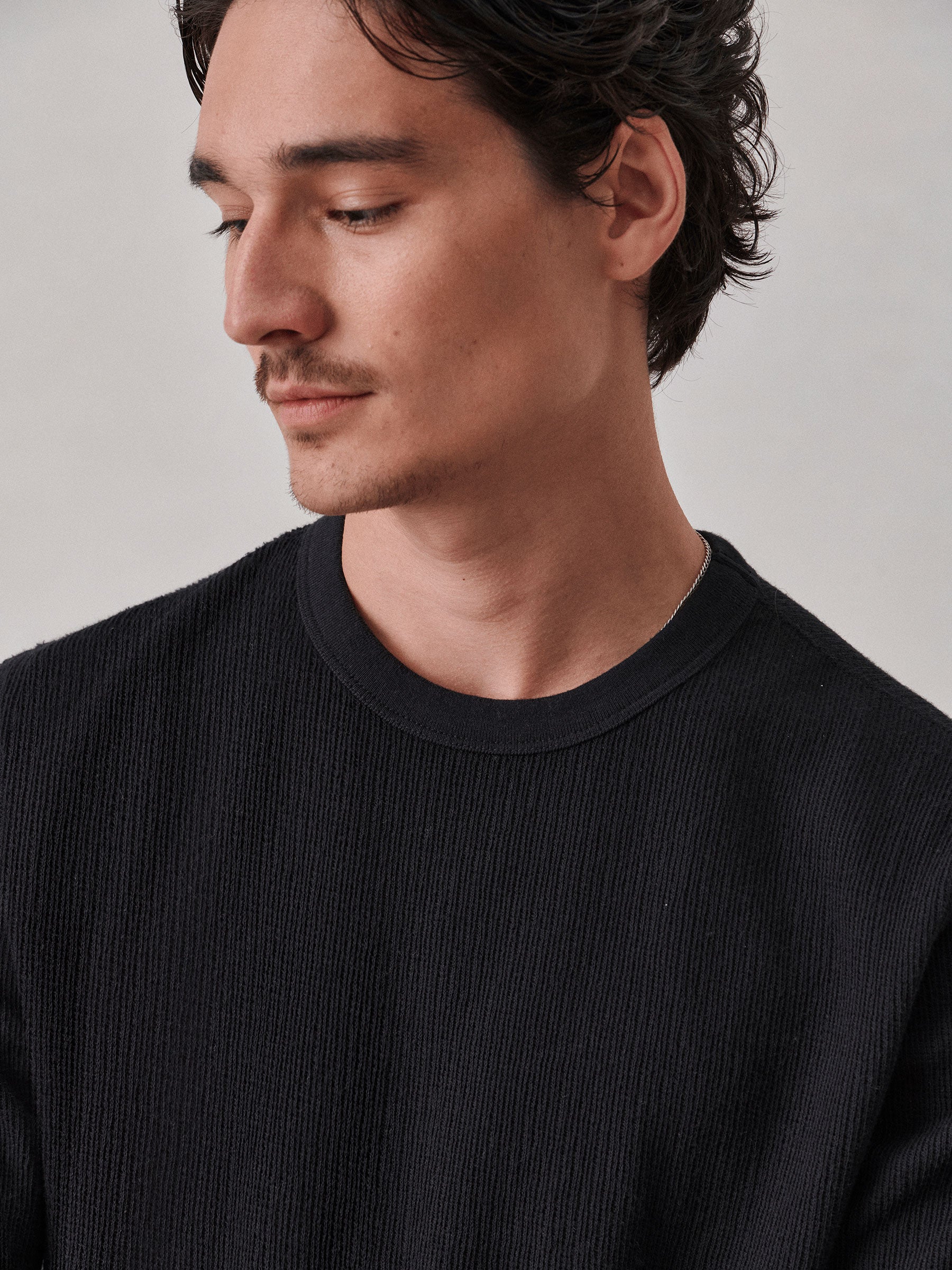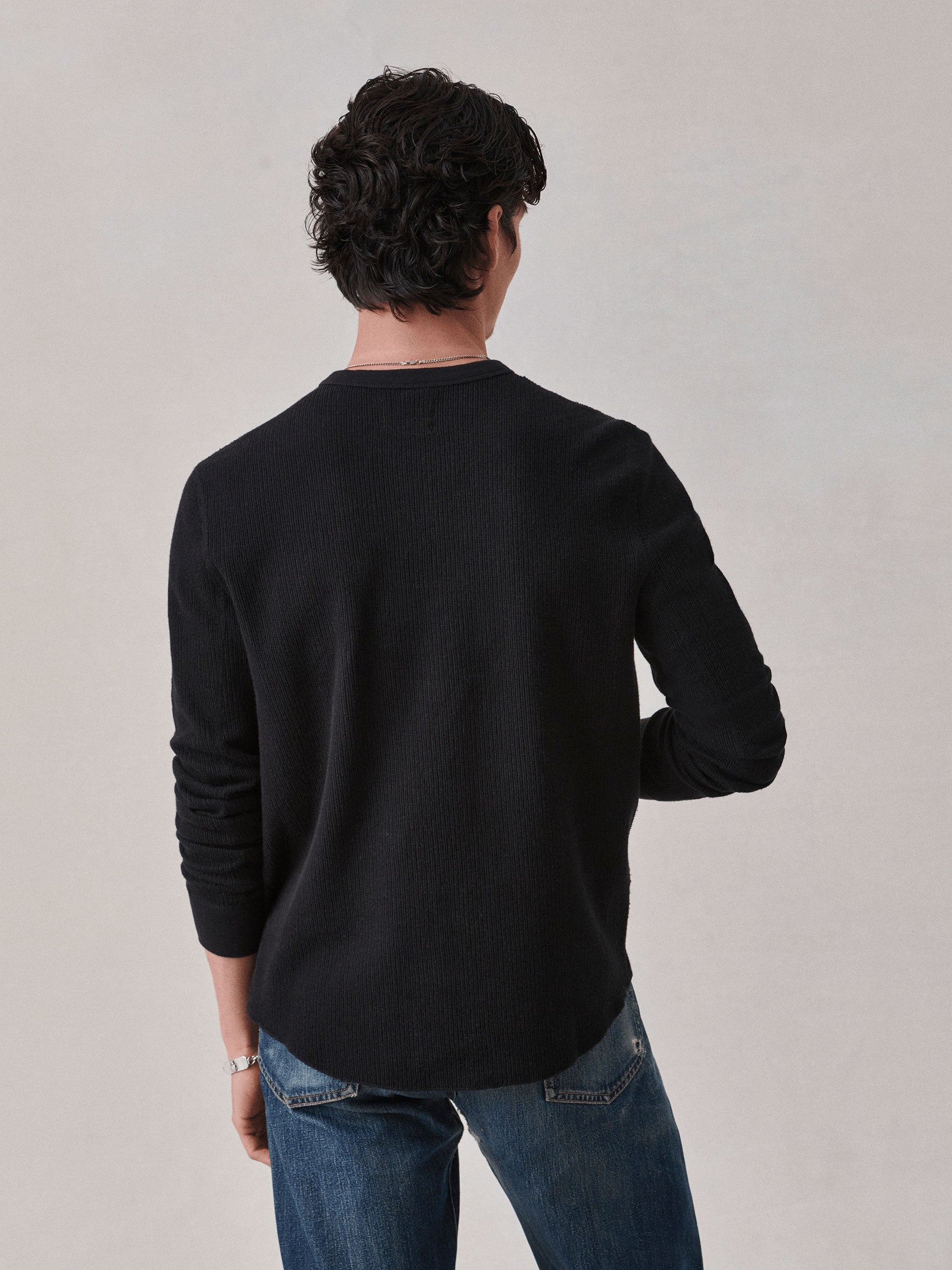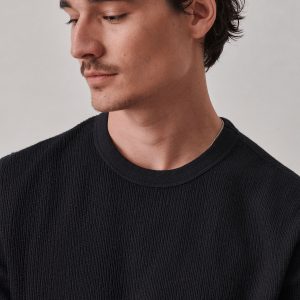 Classic fit thermal long sleeve crewneck tee with our signature curved hem. This 250 GSM French rib cotton double knit features a waffle-knit face and a smooth jersey back. Constructed with ribbed cuffs and flat-lock stitching throughout for improved comfort and durability. Garment washed with enzymes and softener for a lived-in feel.